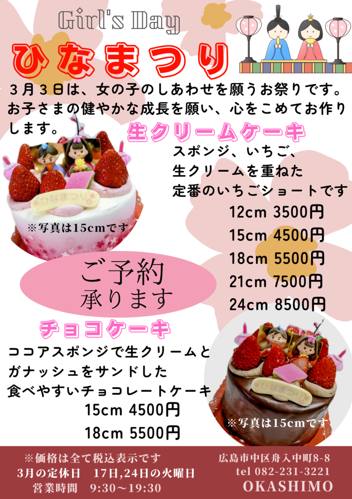 ひなまつりケーキのご予約はこちらから